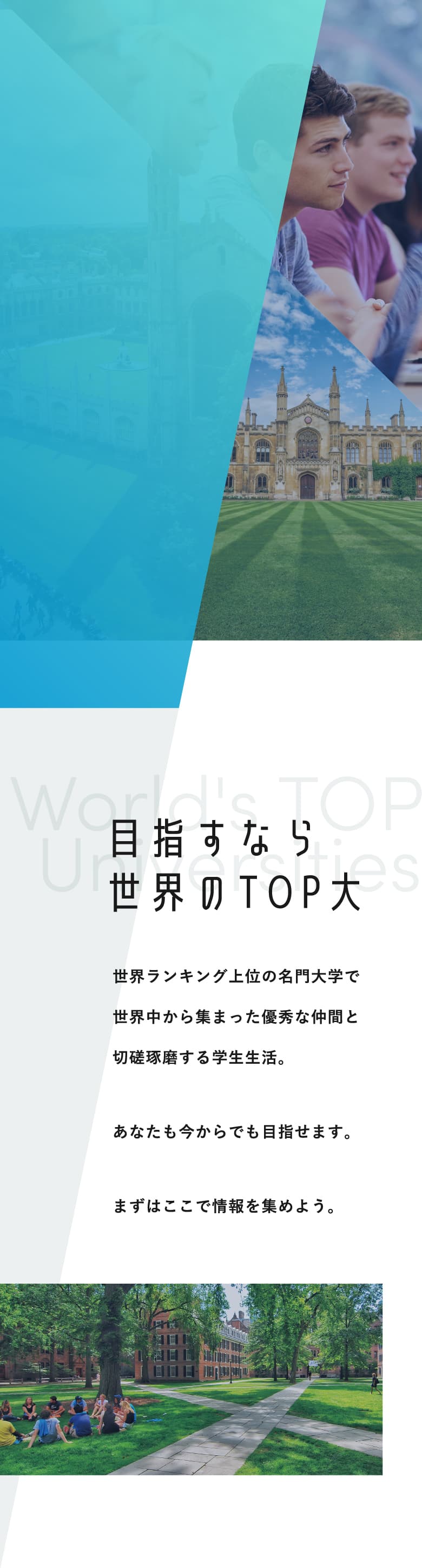 IVYリーグを始めとした海外TOP大進学に向けて、エッセイ作成を中心とした出願指導を行なっている海外TOP大進学塾。ハーバード、イエール、プリンストンなどのTOP大への圧倒的な合格実績を持ち、メディア掲載も多数。